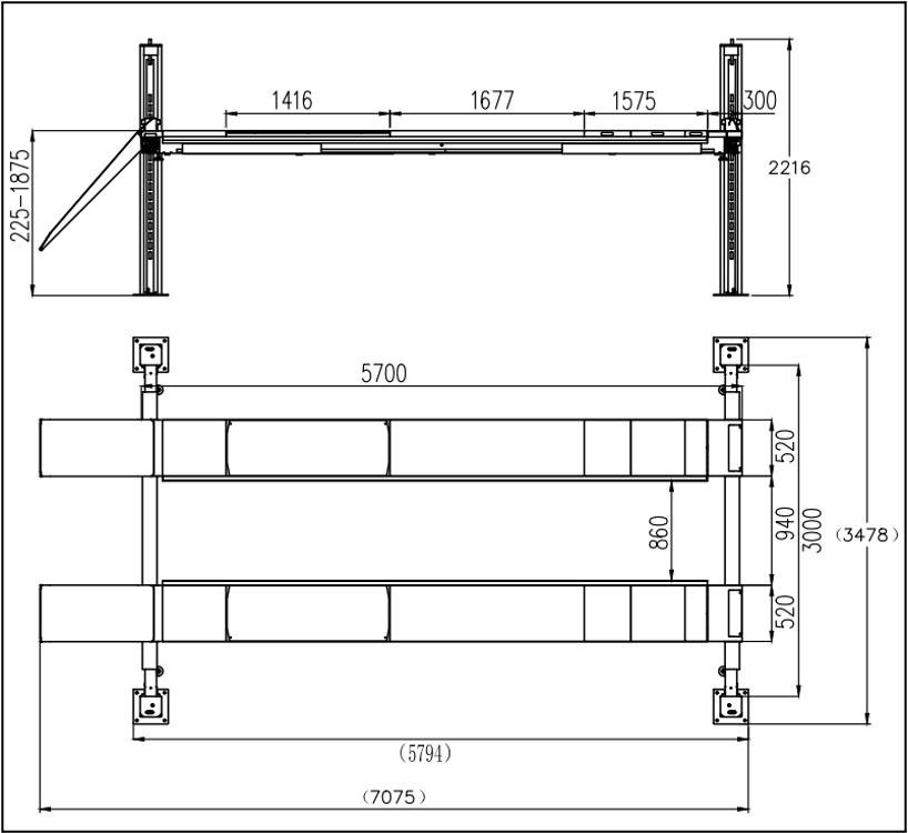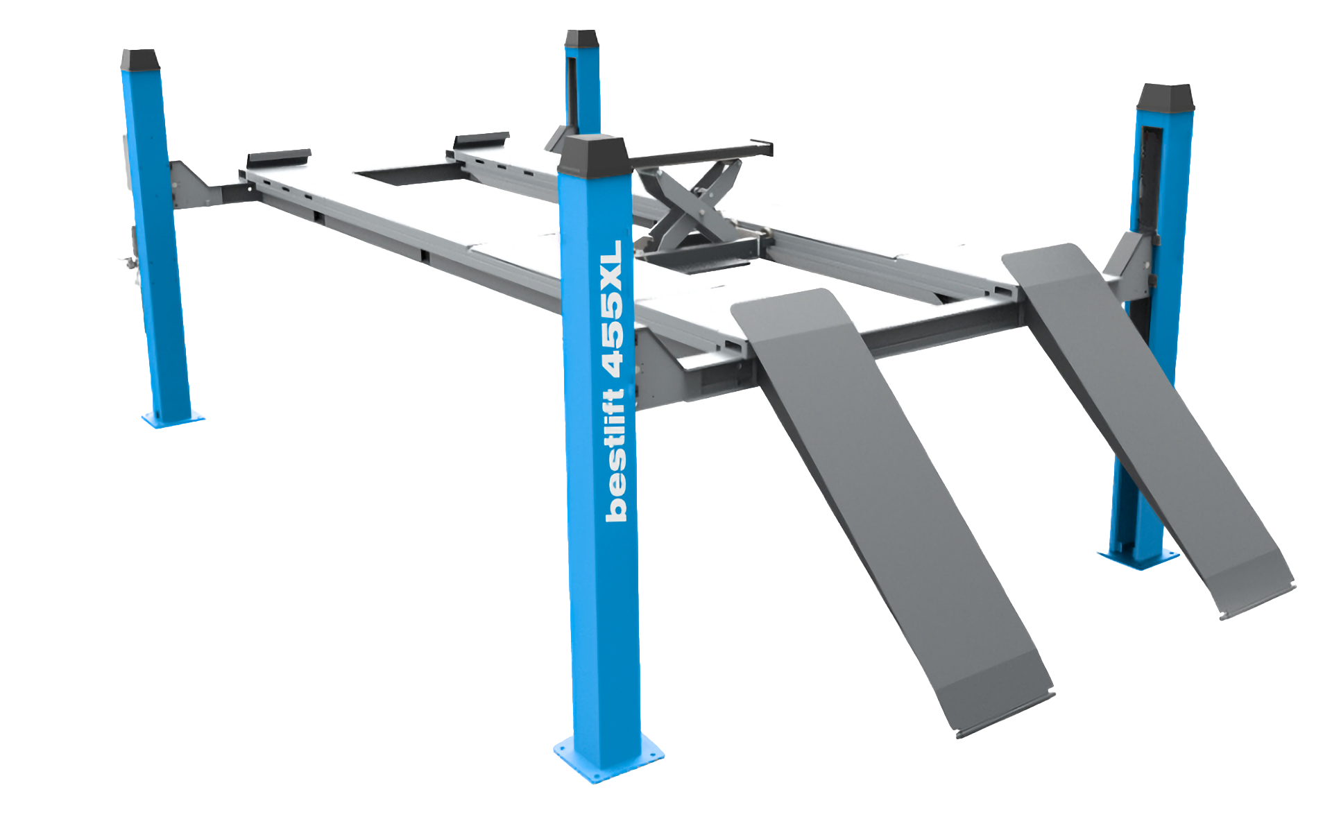 Elektrohydrauliczny automatyczny podnośnik czterokolumnowy przeznaczony do pojazdów o masie nie przekraczającej 5,5 tony. Idealny do badania geometrii kół – zintegrowane płyty rozprężne i zagłębienia pod obrotnice.