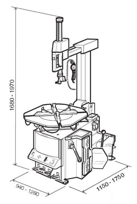 Automatyczna maszyna z masztem odchylanym do tyłu siłownikiem pneumatycznym. Fabrycznie jest wyposażona w przystawkę do opon niskoprofilowych i RUN FLAT. Blokowanie ramienia pionowego jest również automatyczne i powoduje jednocześnie odsunięcie głowicy montażowej od felgi w kierunku promieniowym i osiowym o ok. 3 mm (ta wielkość może być regulowana). Maszt pionowy jest przesuwany do krawędzi felgi automatycznie za pomocą siłownika pneumatycznego. Prędkość obrotów stołu jest płynnie regulowana pedałem w zakresie 6-12 obr/min. Maszyna wyposażona w pomocny inflator.