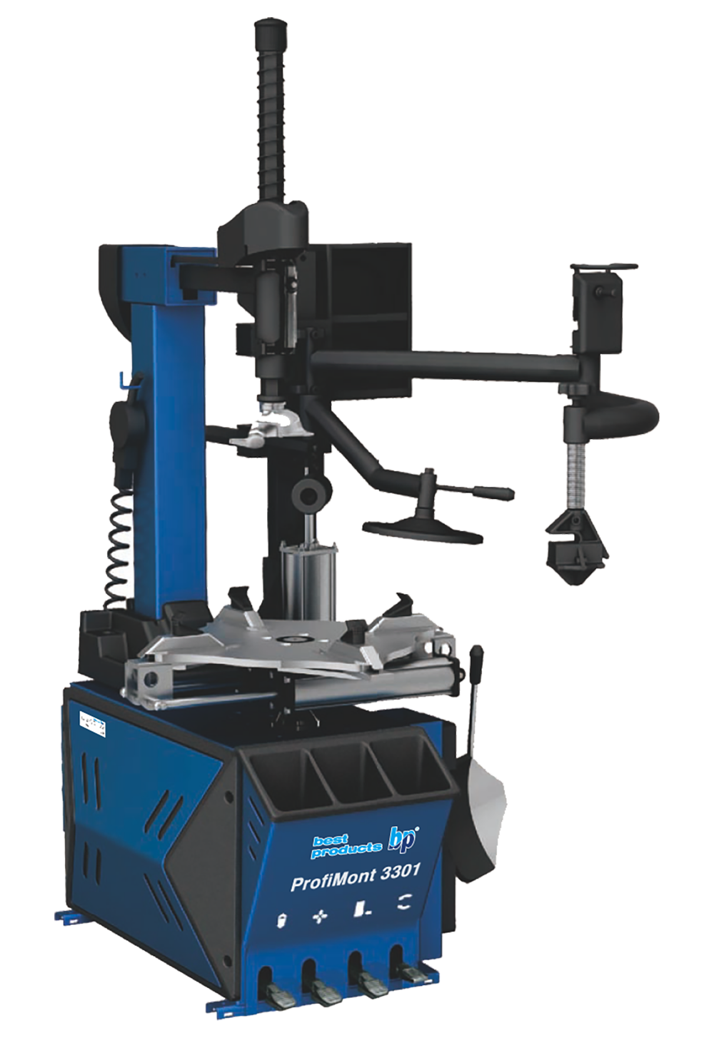 Automatyczna maszyna z masztem ,odchylanym do tyłu siłownikiem pneumatycznym. Fabrycznie jest wyposażona w przystawkę do opon nisko-profilowych i RUN FLAT. Blokowanie ramienia pionowego jest również automatyczne i powoduje jednocześnie odsunięcie głowicy montażowej od felgi w kierunku promieniowym i osiowym o ok. 3 mm (ta wielkość może być regulowana).