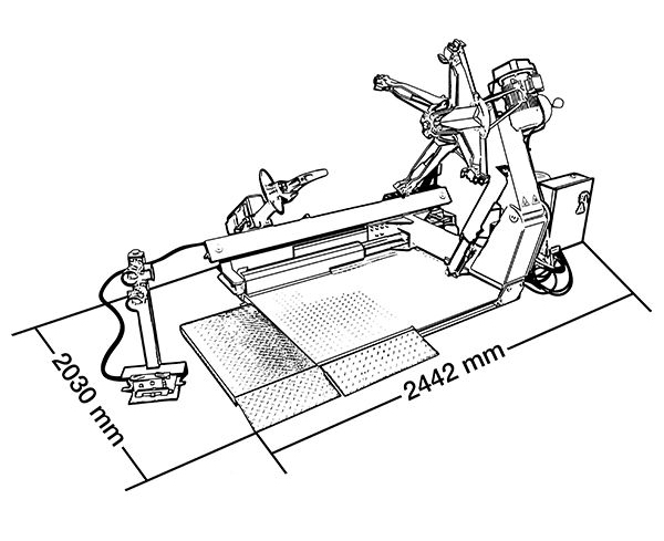 Montażownica przeznaczona do wymiany opon dętkowych i bezdętkowych kół samochodów ciężarowych, autobusów oraz pojazdów budowlanych I rolniczych do 56” średnicy obręczy i całkowitym ciężarze koła do 1500 kg.