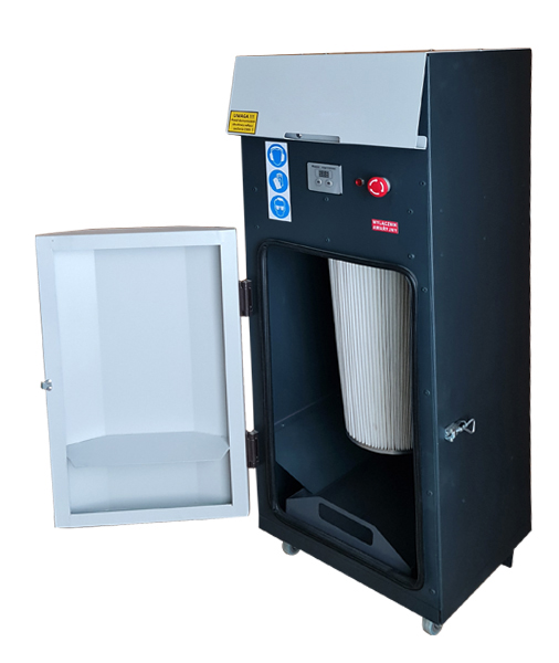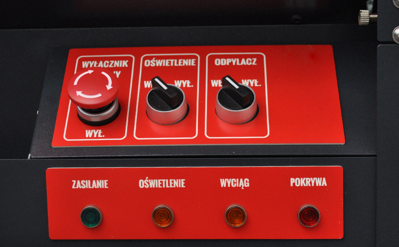 panel elektryczny sterowania umożliwiający załączanie każdej funkcji z osobna (odpylanie, oświetlenie, załączanie elektrozaworu) potwierdzane kontrolkami