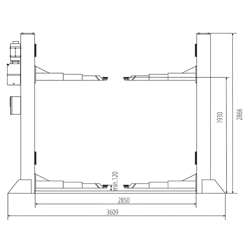 Elektrohydrauliczny podnośnik dwukolumnowy przeznaczony do pojazdów o masie nie przekraczającej 4 ton. Montowany na ramie dla słabszych posadzek.