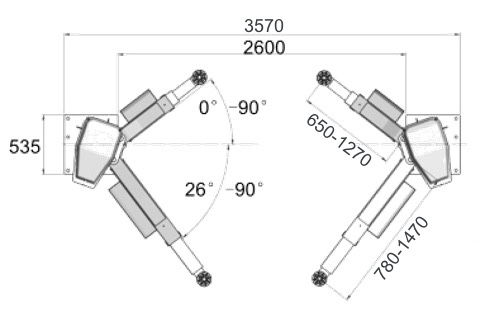 • Zasięg ramion – krótkie 3-stopniowe    650 - 970 - 1270 mm
