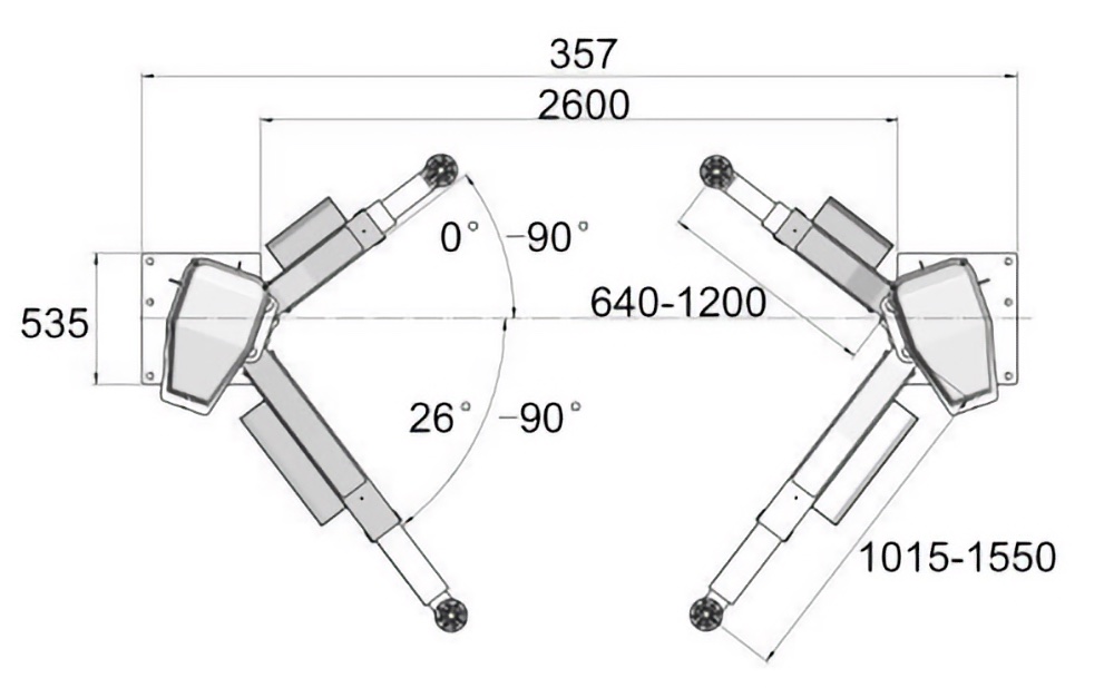 Zasięg ramion – długie 2-stopniowe 1015 – 1550 mm