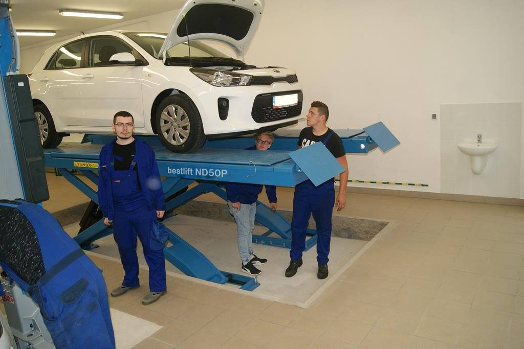 Wyposażony w pomocniczy podnośnik podprogowy (nożycowy) tzw. wersja "nożyce w nożycach"