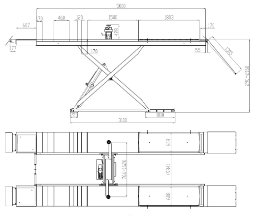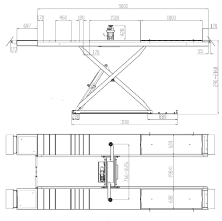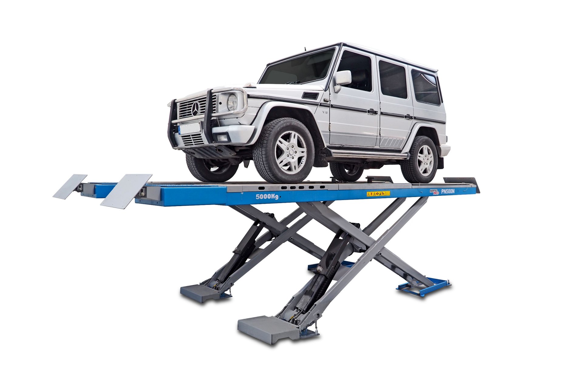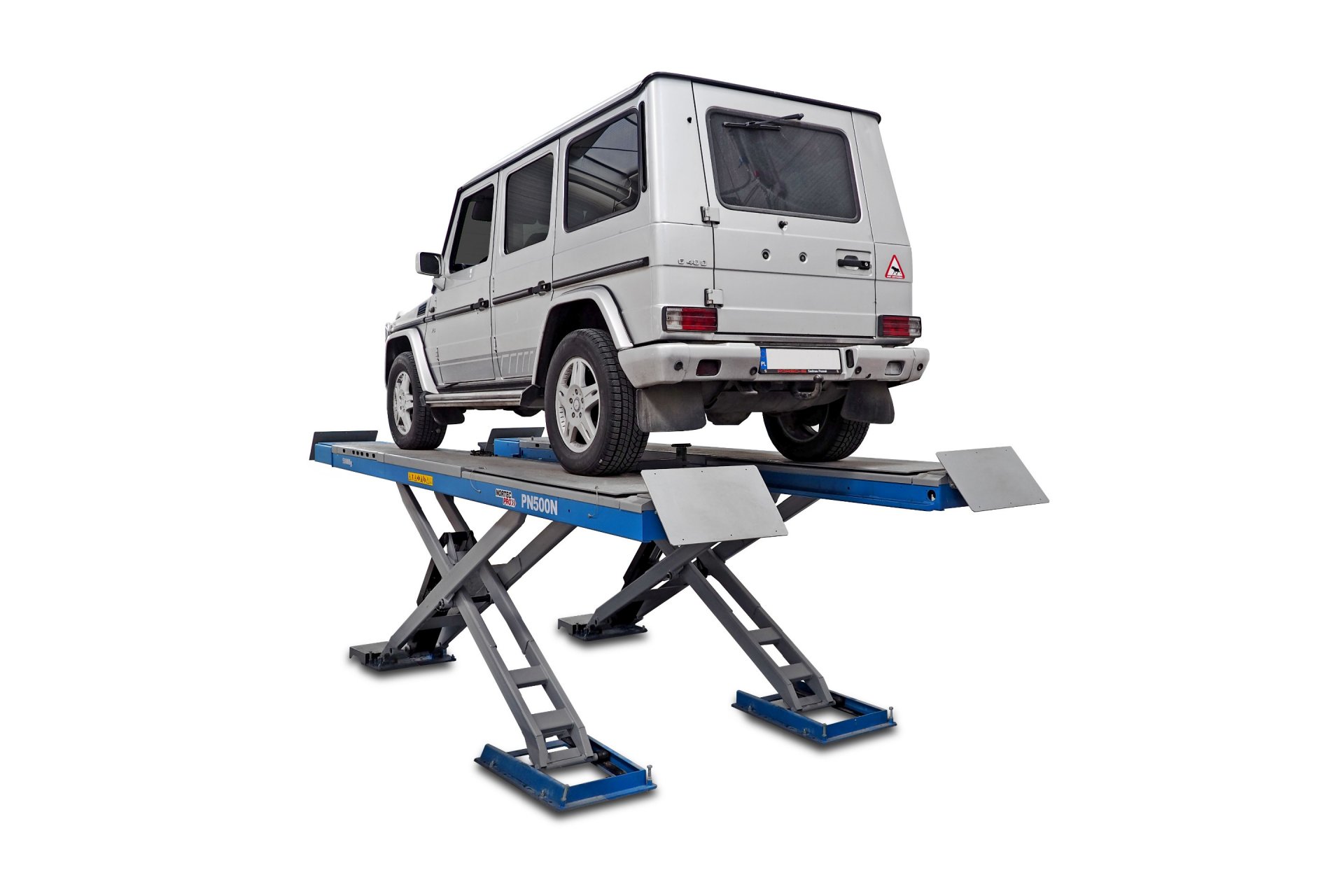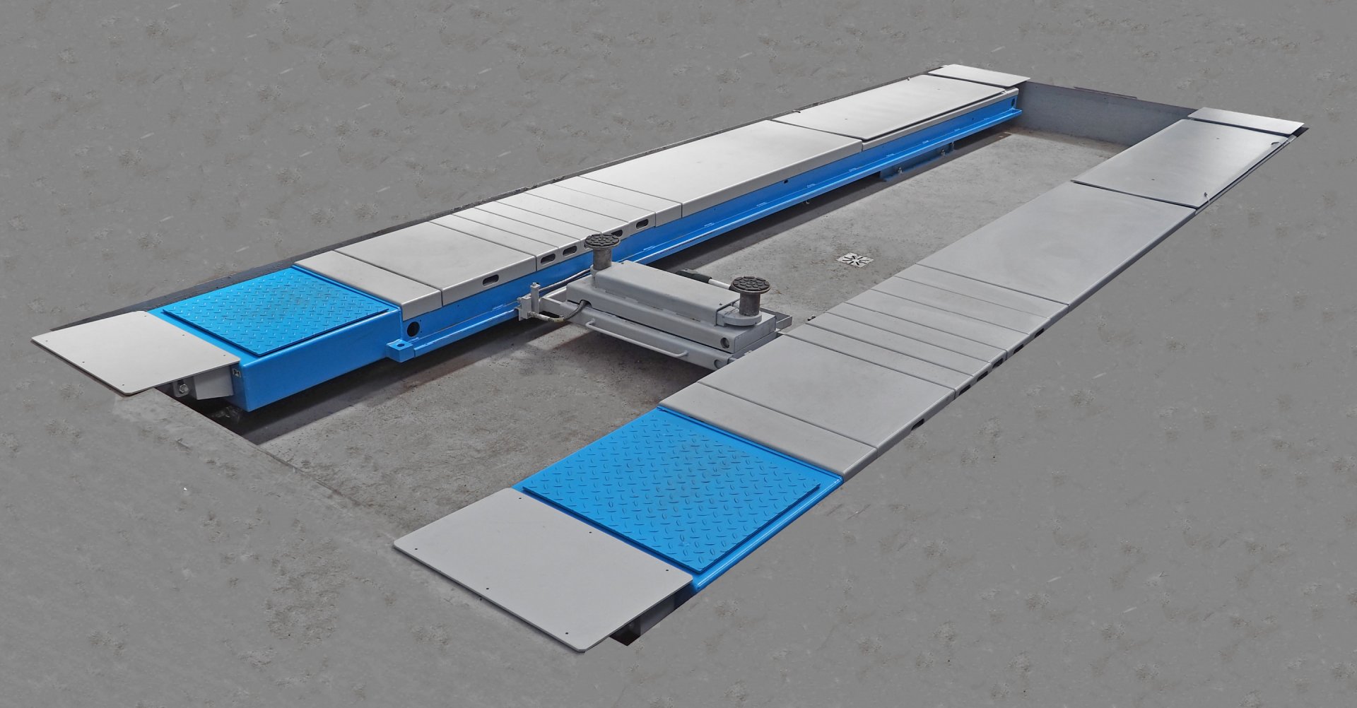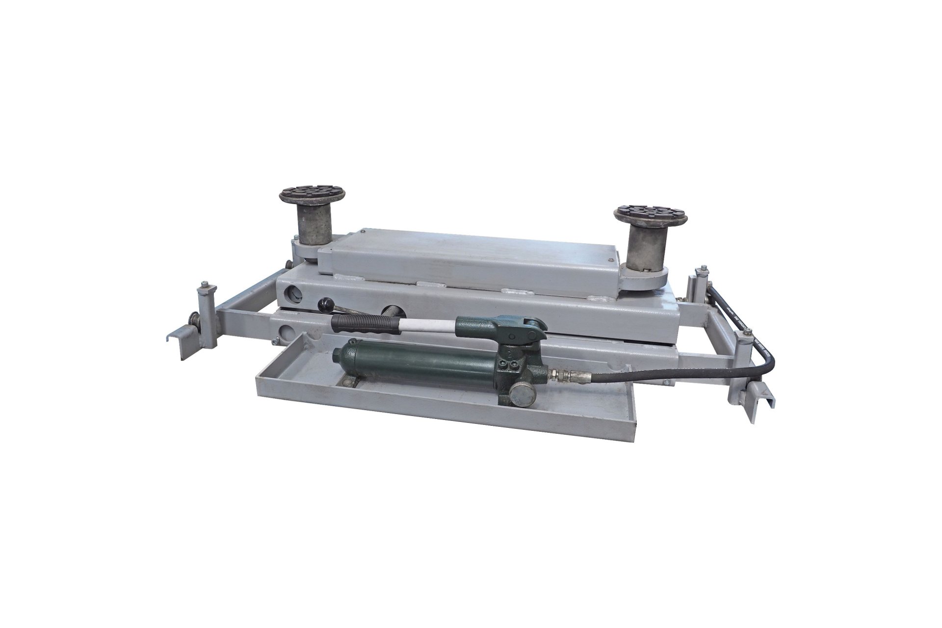 Podnośnik nożycowy pod geometrię z szarpakiem. Posiada hydrauliczny dźwignik osi zasilany pneumatycznie. Został zaprojektowany do montażu w zagłębieniach lub na posadzce.