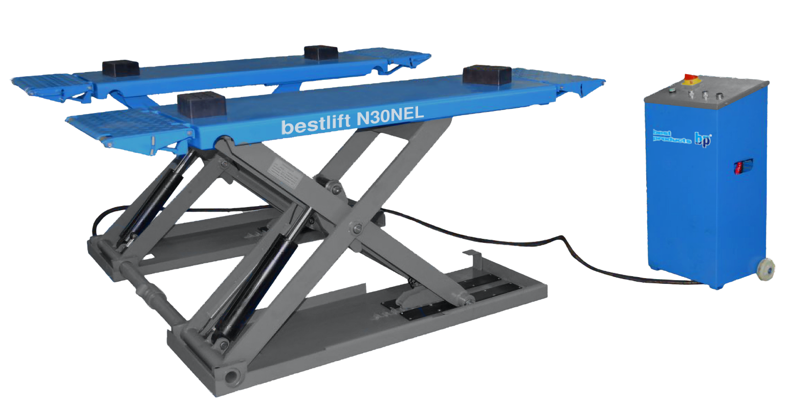 Podnośnik nożycowy niskiego unoszenia o zwiększonej do 1200 mm wysokości podnoszenia. Idealny do serwisów ogumienia, blacharni i lakierni. Platformy mogą być wydłużone poprzez zablokowanie najazdów. W komplecie znajduje się również bardzo praktyczny zestaw mobilny umożliwiający przesuwanie podnośnika.